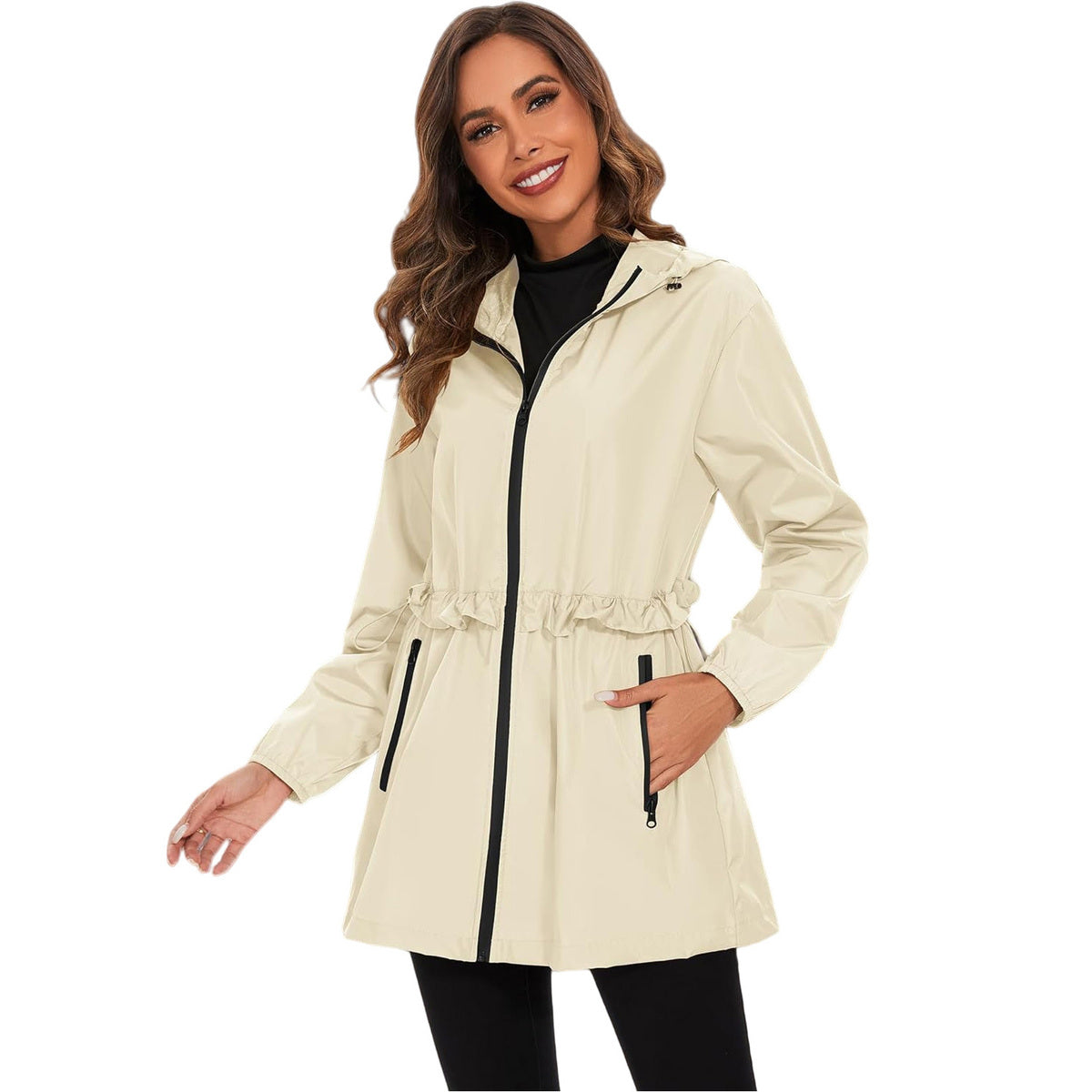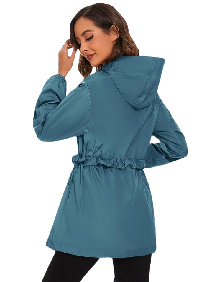 Women Casual Solid Color Long-Sleeve Raincoat Hoodie