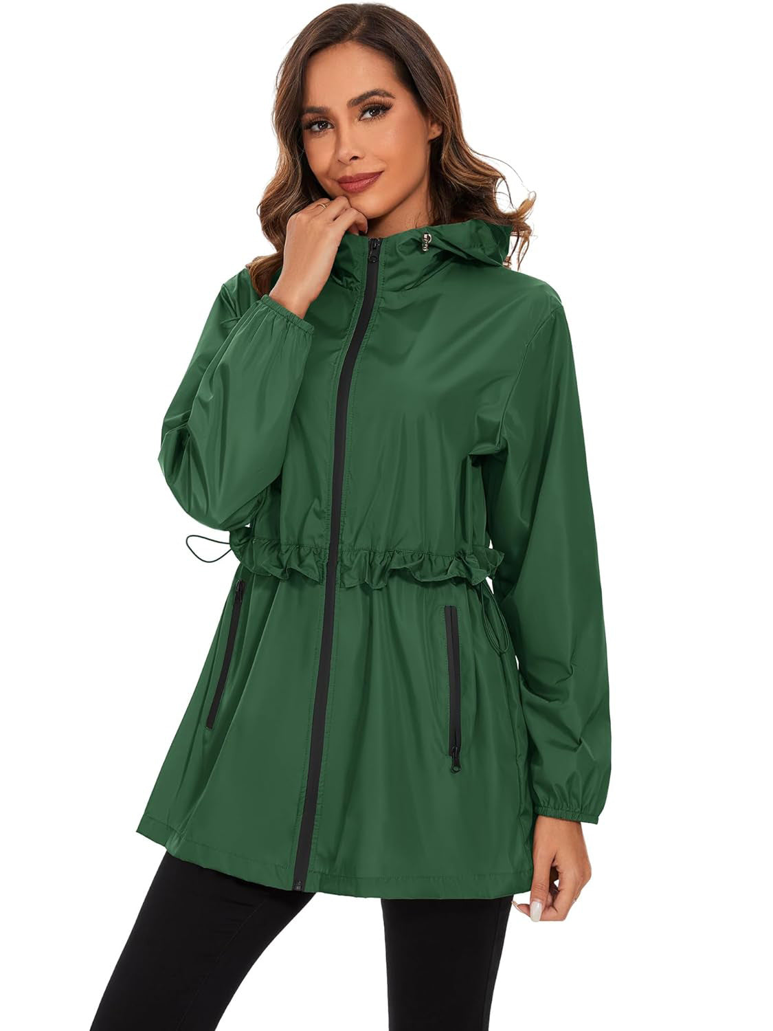 Design Features: The long-sleeve design with an adjustable drawstring hood provides a customizable fit and added protection against rain. The solid color pattern offers a versatile and stylish look suitable for various casual settings.