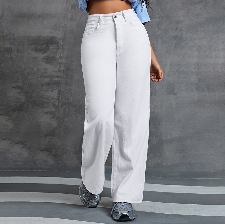 These high waist straight jeans are crafted from lightweight denim cotton blend, offering a comfortable and stylish option for casual wear. Available in multiple colors and sizes, perfect for relaxed, everyday outfits.