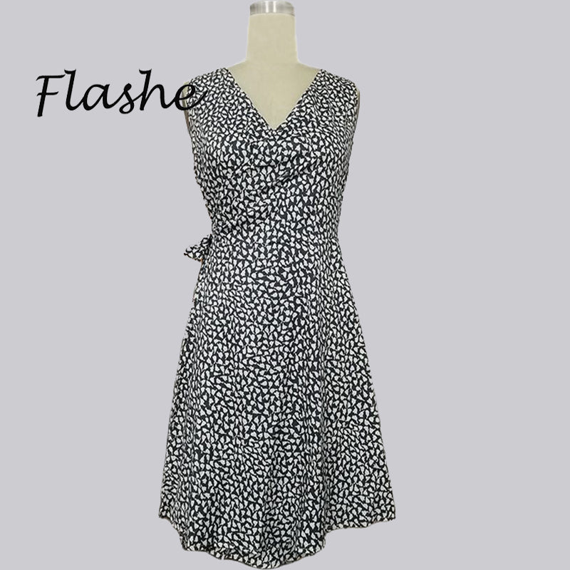Women Elegant Casual Polka Dot V Neck Sleeveless Bandage Dress