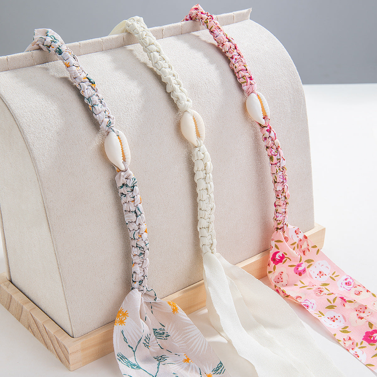 Features- Material: Mixed materials including natural shells and woven fabric