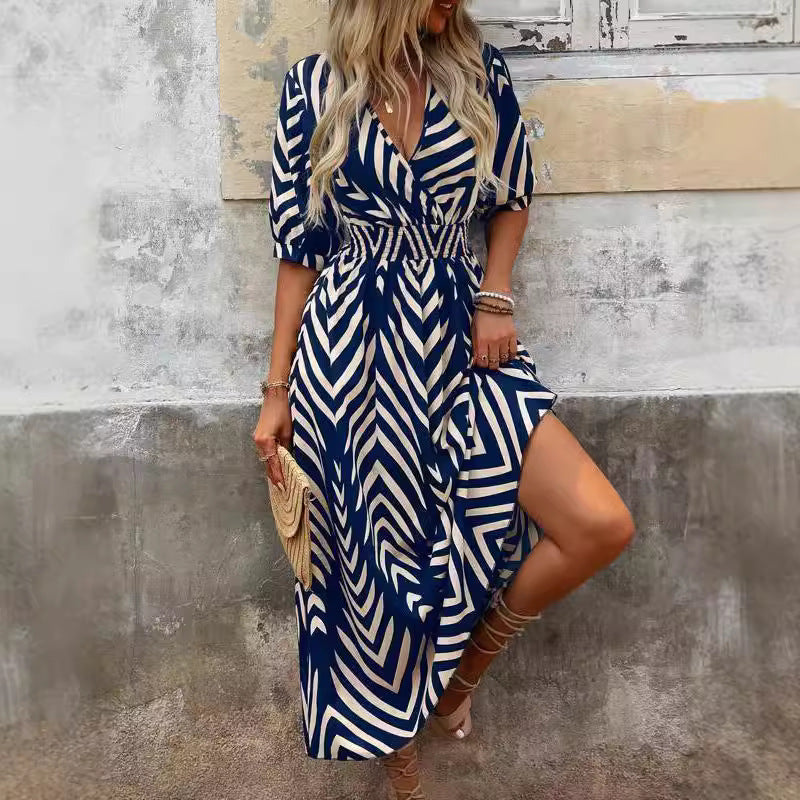 Elevate your wardrobe with our Women Fashion Casual Printed V-Neck Short-Sleeve Loose Dress, designed for elegance and comfort. Perfect for casual outings or relaxed gatherings, this dress combines style with versatility.