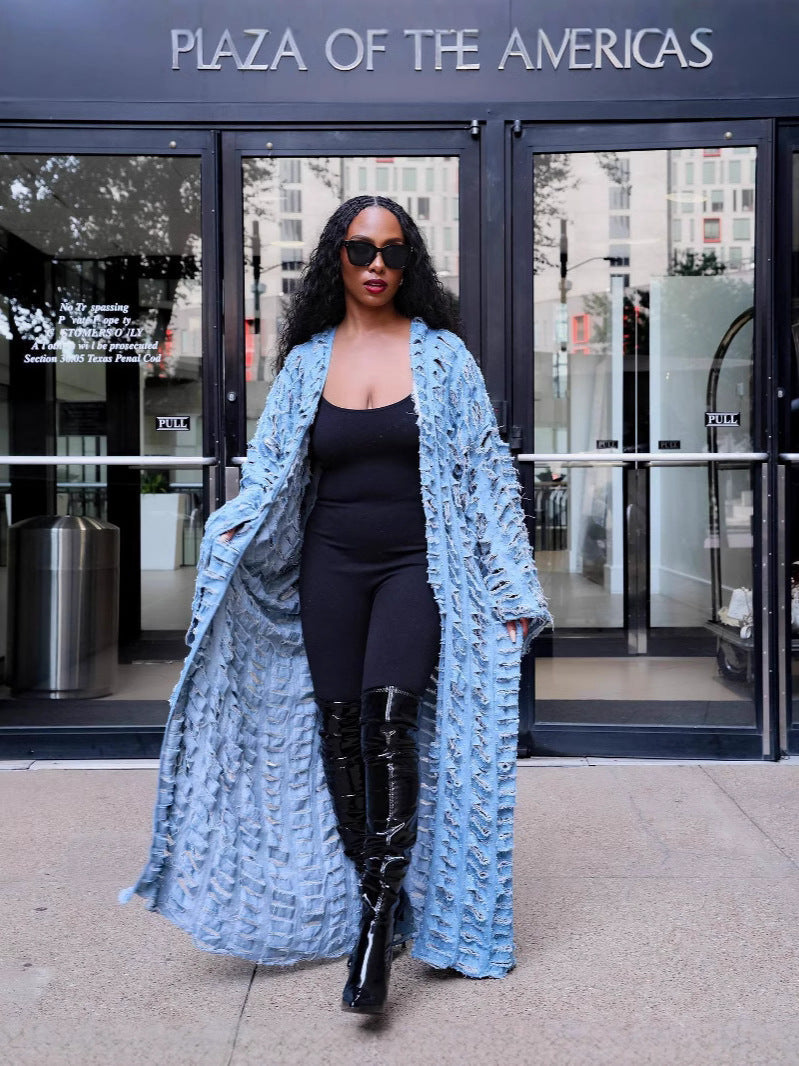 This Women Fashion Casual Ripped Tassel Long Sleeve Denim Coat is the ultimate layering piece, combining comfort and trendiness in one. Its durable denim material and modern design make it ideal for casual outings or a layered look, ensuring you always stand out in style.