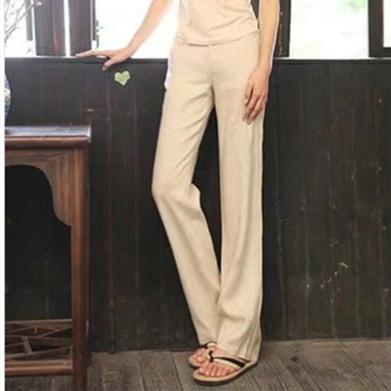 These stylish straight-leg pants are designed for the modern woman who values both comfort and chic aesthetics. The combination of cotton and linen offers breathability, making them suitable for any occasion, from casual outings to leisurely weekends. Available in a variety of colors, these pants are a versatile addition to any wardrobe.