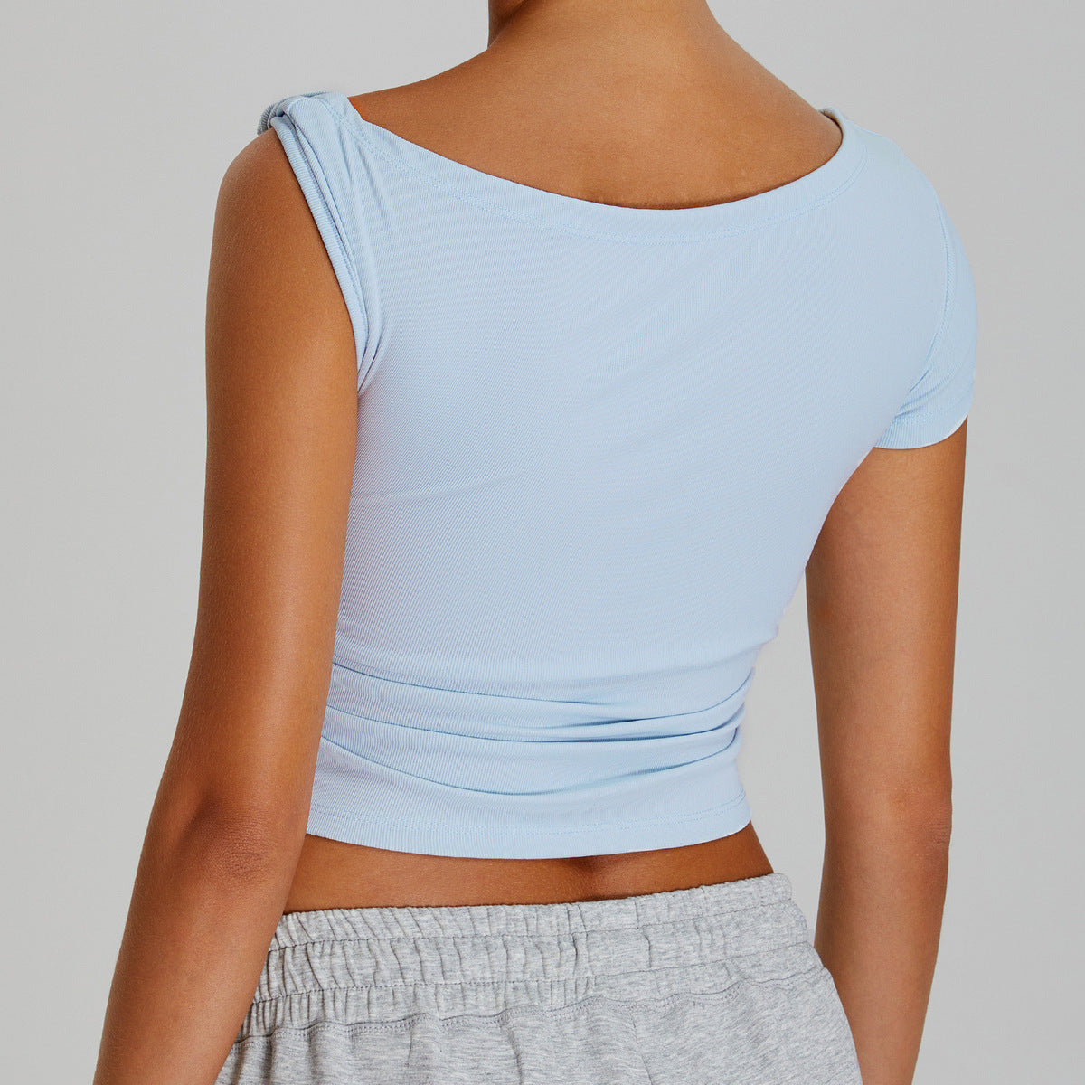 Elevate your casual style with our Women Fashion Casual Solid Color Irregular Short-Sleeve Slim-Fit Sports T-Shirt. Perfect for workouts or relaxed outings, this stylish tee combines comfort and modern design.