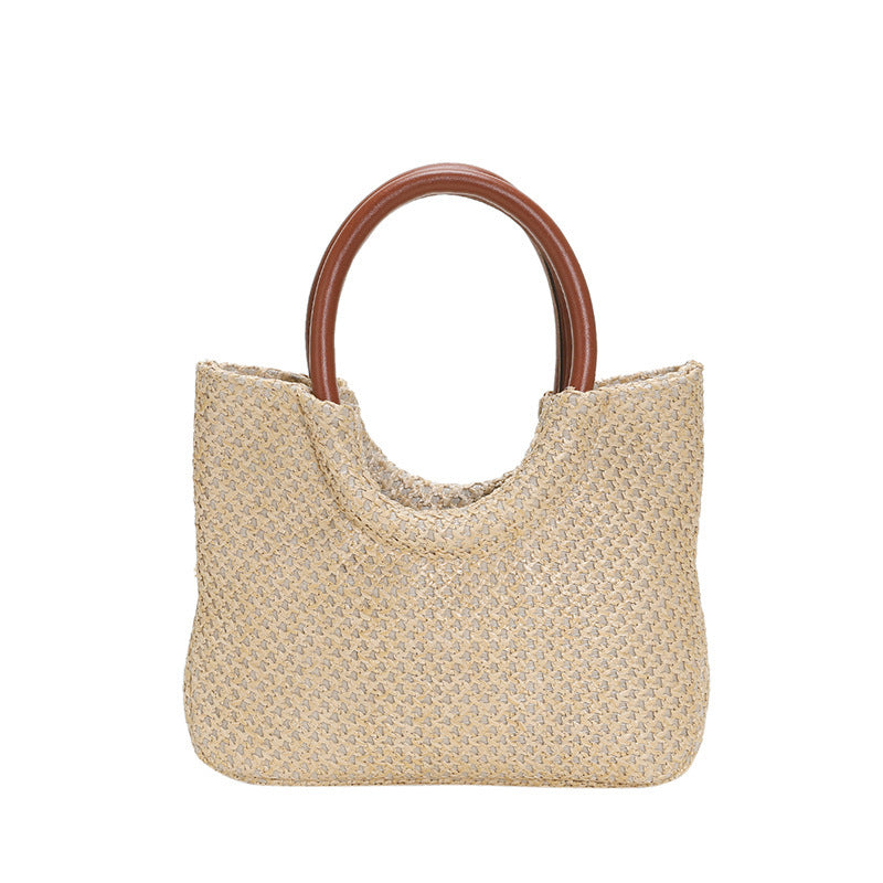 Women Fashion Casual Straw Woven Circular Handbag with Art Style
