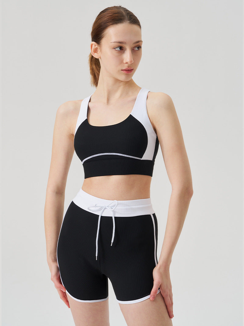 Women Fashion Contrast Color Backless Tank Top and Shorts Two-Piece Set