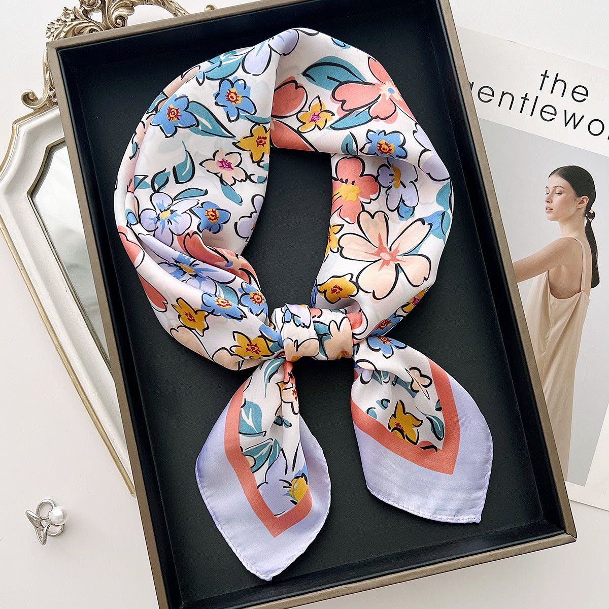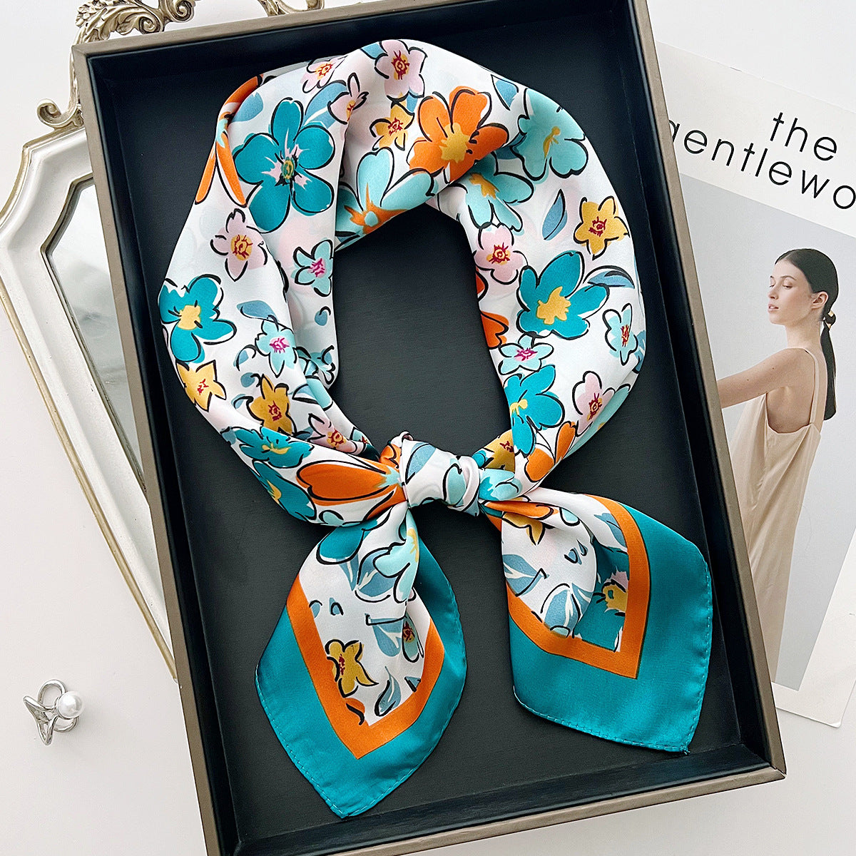 Enhance your wardrobe with this stylish floral square silk scarf, crafted from high-quality polyester. Its versatile size and vibrant colors make it an essential accessory for daily fashion, offering both comfort and chic appeal.