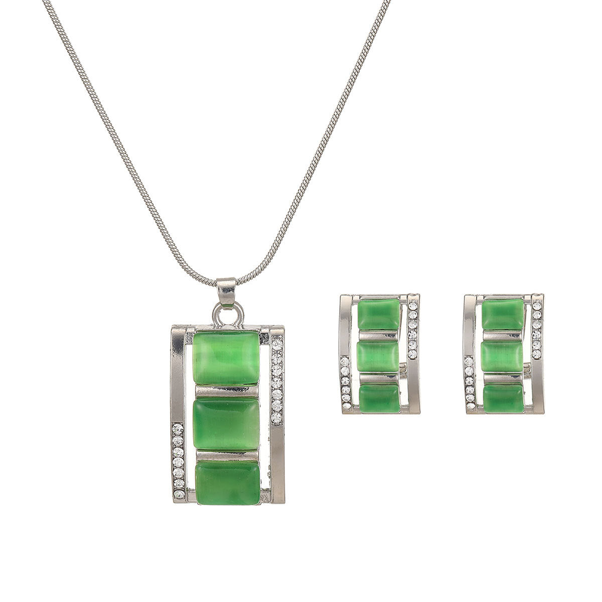 - Includes a long square cat eye necklace and matching earrings