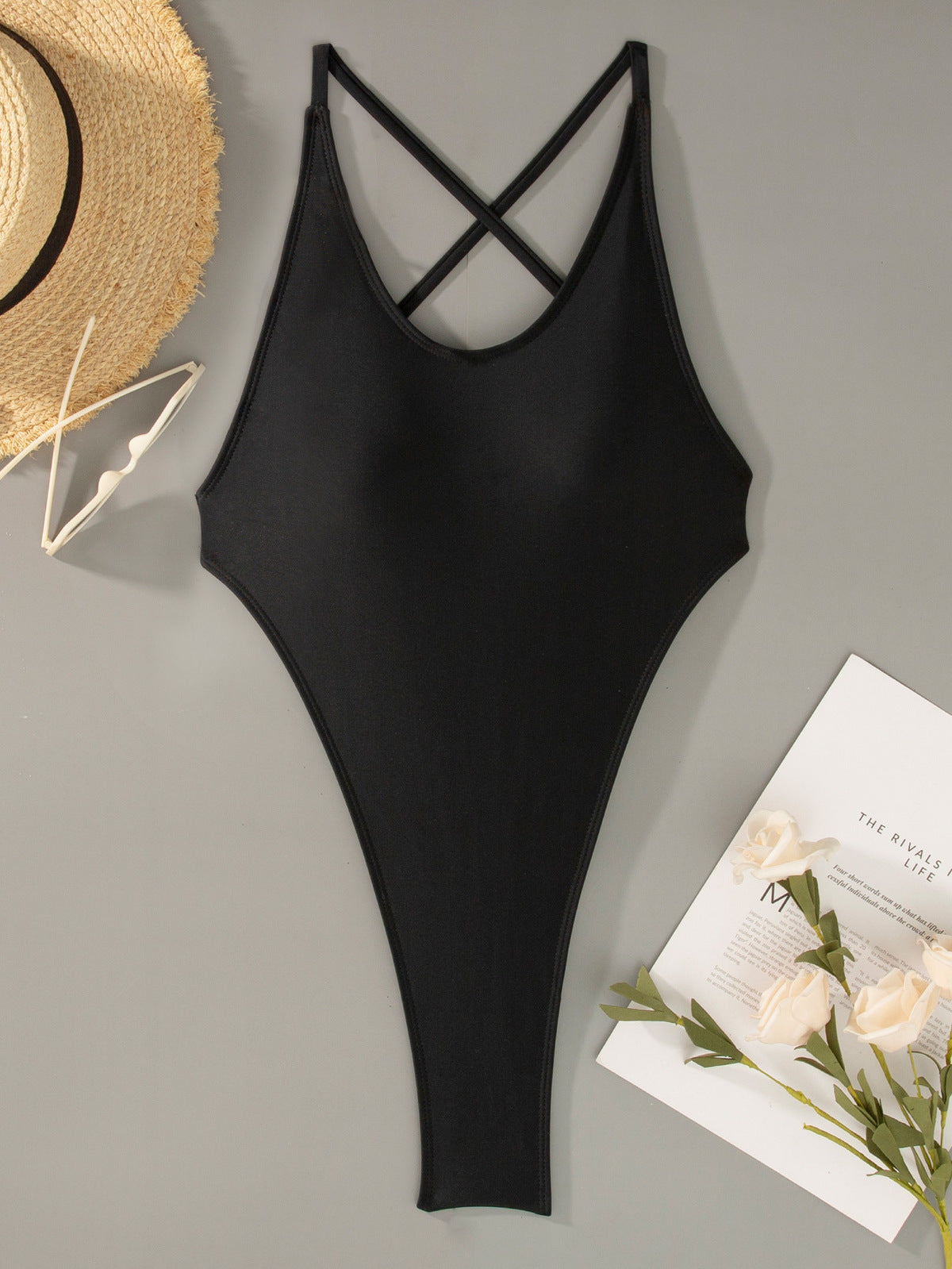 Women Fashion Sexy Simple Backless One-Piece Swimsuit