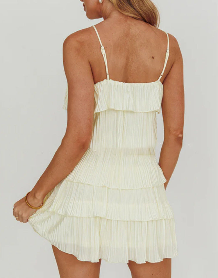 Women Fashion Sexy Solid Color Multi-Layer Ruffle Dress