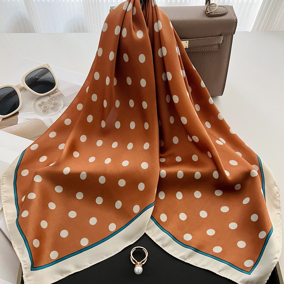 Enhance your wardrobe with this versatile silk scarf featuring a stylish wave dot pattern. Its lightweight polyester fiber ensures comfort and elegance, making it ideal for casual, professional, or special occasions. Available in classic colors to complement any look, this scarf adds a touch of light luxury and fashion-forward charm to your outfit.