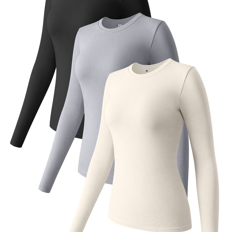 - Design: Slim fit with a crewneck and long sleeves for a flattering silhouette