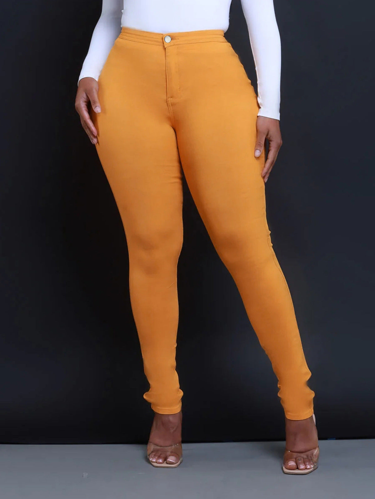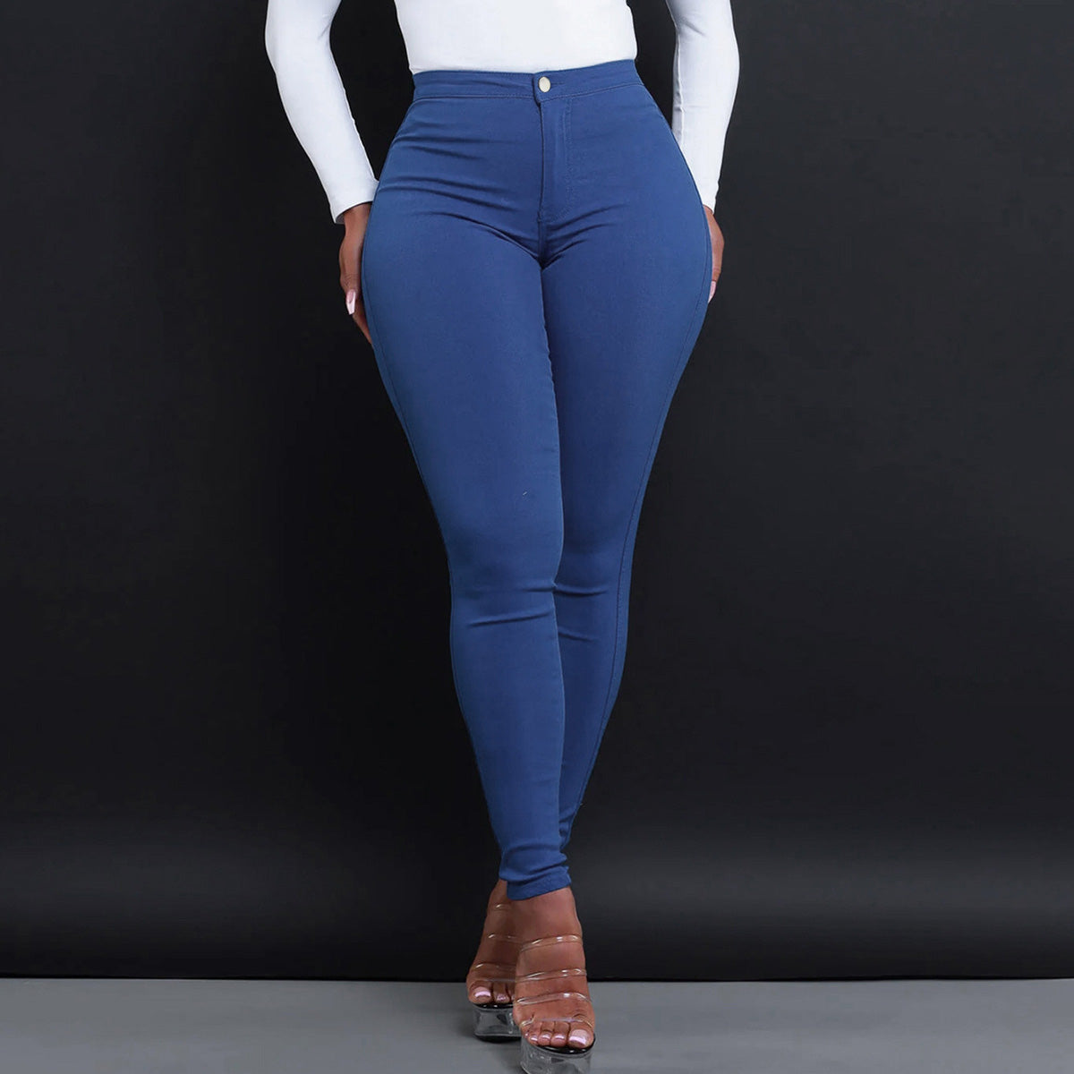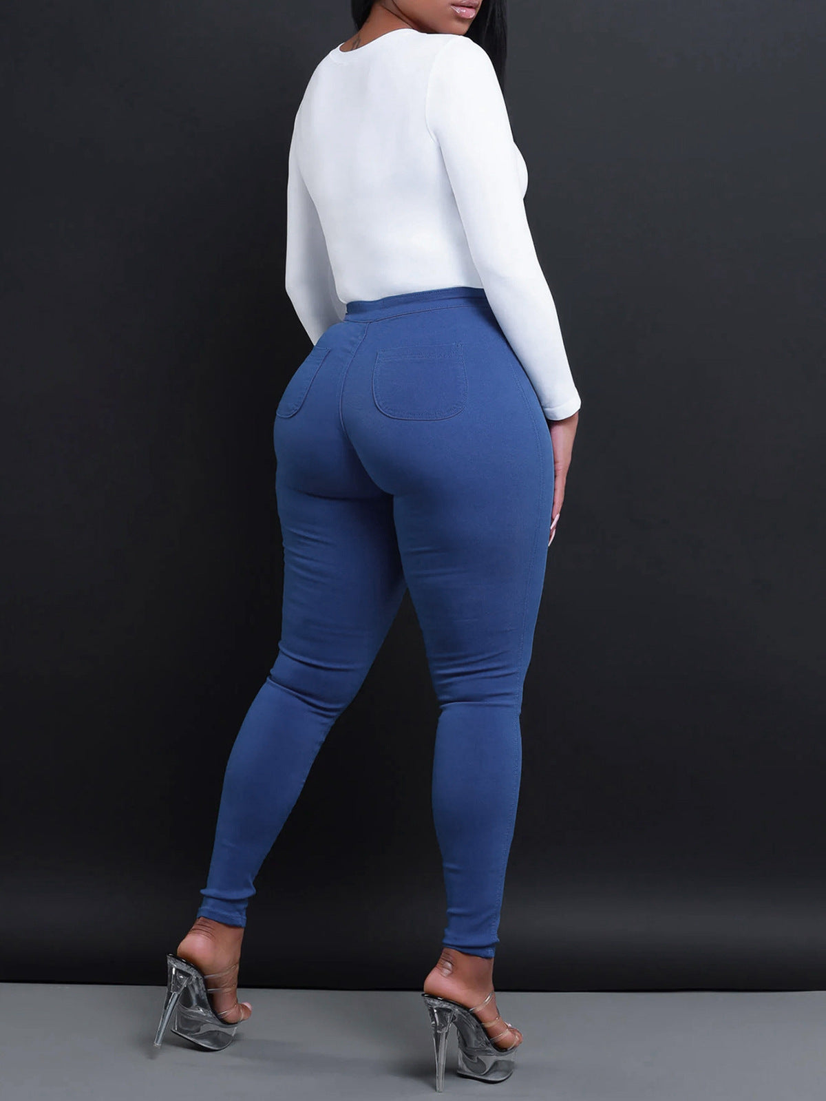 Women Fashion Solid Color Mid-Waist Tight Jeans
