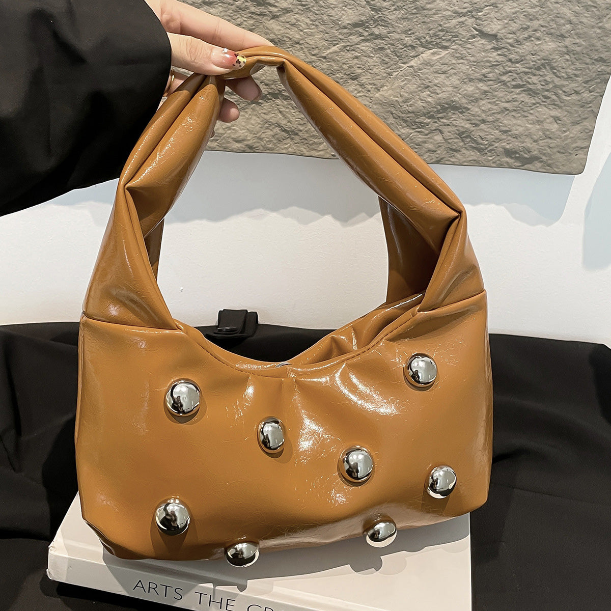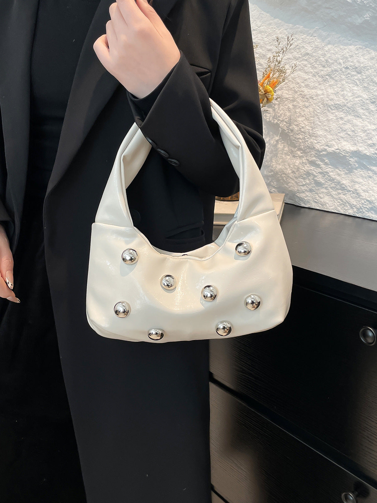 Women Fashion Solid Color Rivet Handbag Urban Style PU Underarm Bag