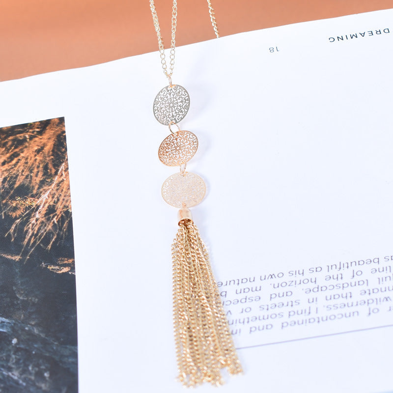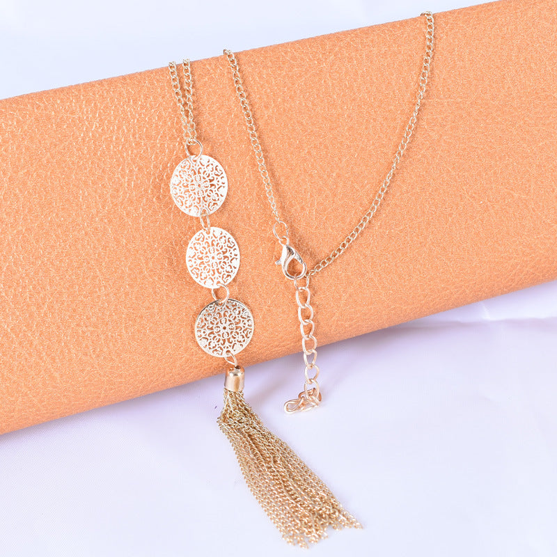 Women Retro Hollow Geometric Tassel Necklace Alloy Pendant