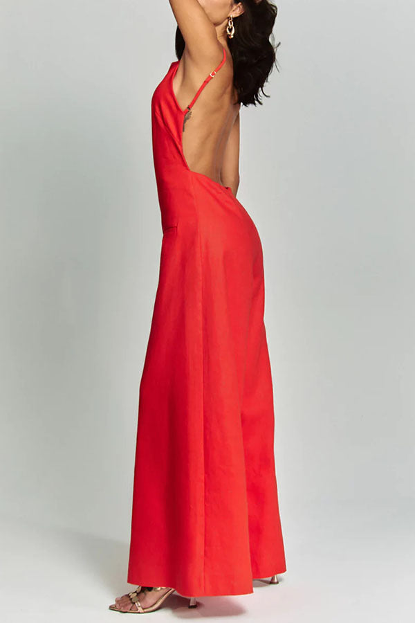 Crafted from durable polyester, this stylish jumpsuit combines a sexy backless cut with a loose, comfortable fit. Perfect for casual outings or parties, it offers versatile color options and sizes to suit various preferences, ensuring a sleek, trendy look wherever you go.